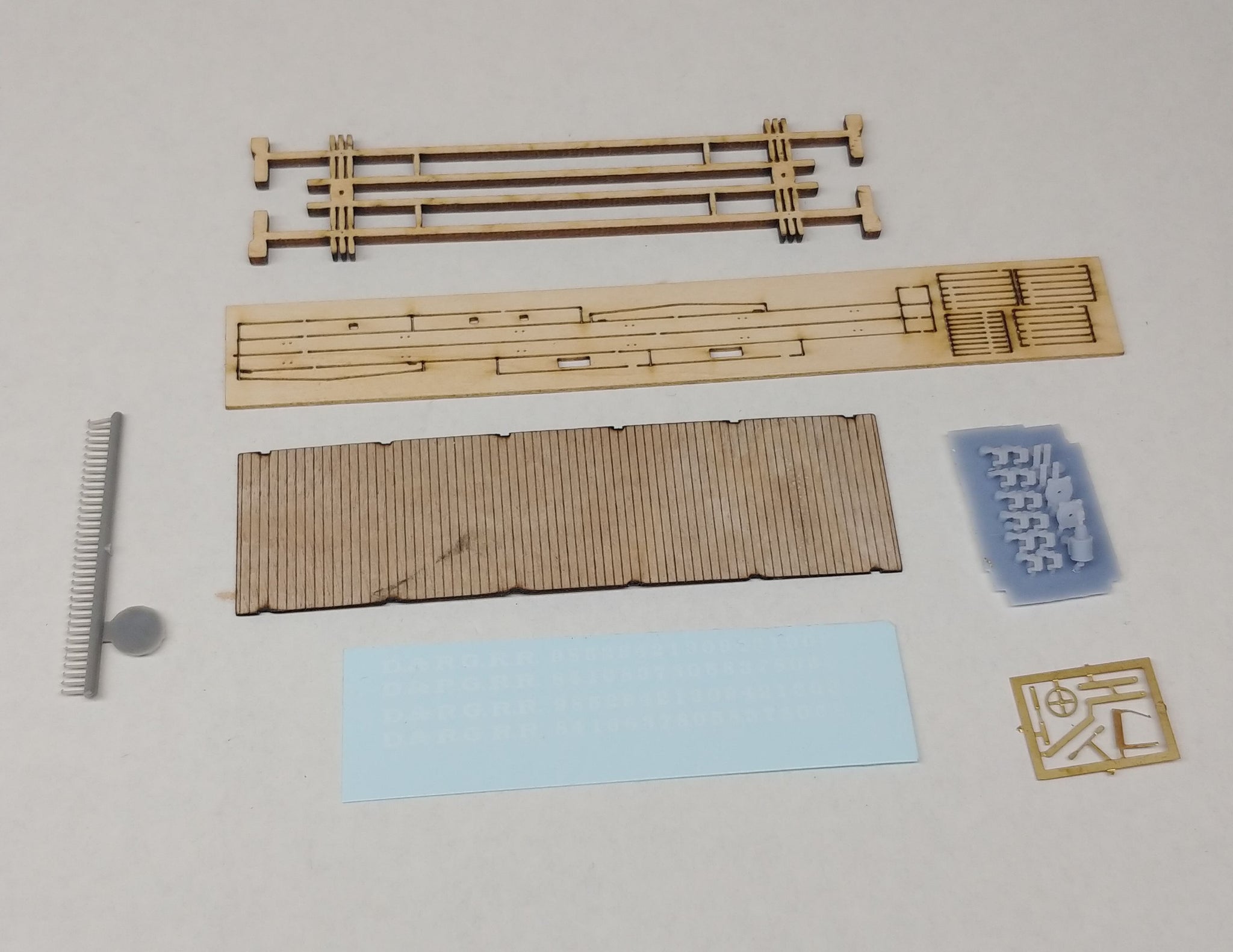 The prototype for these cars were built by Billmeyer & Small in 1881 for the D&RG. The kit comprises laser cut wood, etched brass, 3D printed, and injected plastic details. Detailed instructions and decals come with the kit.